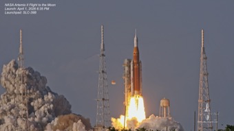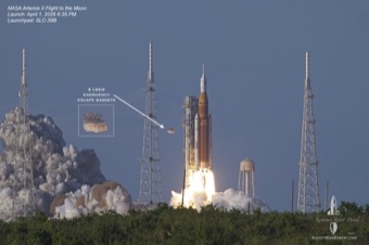 First crewed flight of the 322-foot-tall Space Launch System (SLS) rocket and Orion spacecraft.